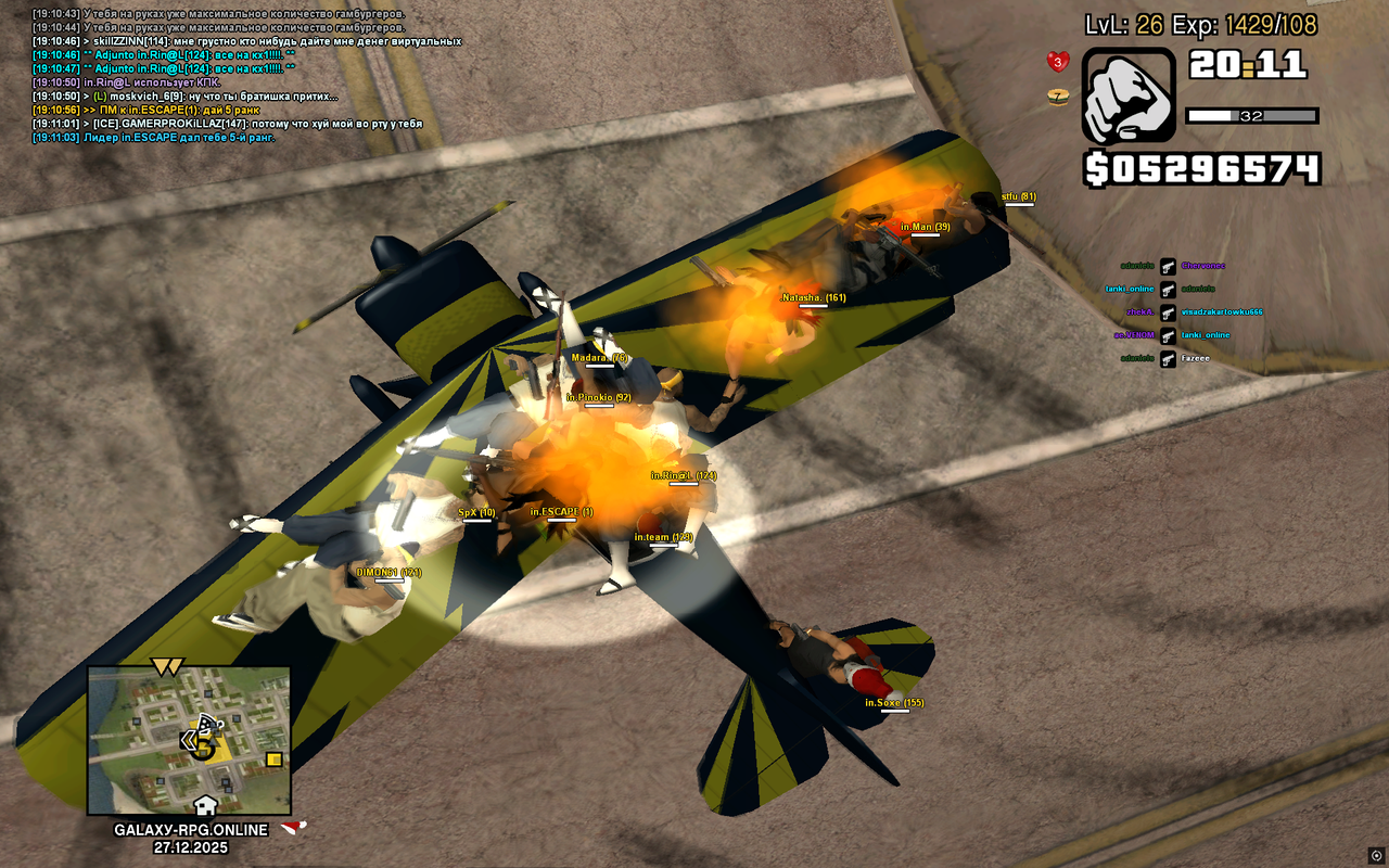 JIAKER_B_TAHKE 145 Жалоба Опубликовано 15 июля, 2024 (изменено) Данная тема является списком всех участников банды Los Santos Vagos. Каждый, кто вступил в ряды банды, должен отправить скриншот своего вступления в данную тему. При получении повышения/понижения, а так же при проблемах с онлайном, оставляйте отпись в этой теме. Главный лидер: in.escape (Владислав)Второй лидер: in.Man (Михаил)Временный лидер: - VatruShkaBranomanoMostWantedMadara.in.Darknessin.Teksin.SPXPROTOTNPNuts.Diction [LSV]Raadikin.Skelofhw.RighteousBLACKINWHITE (GH)(CH)[IL]escape (07.03.2025)(2)(3)(4)(5)[L]in.Rin@L(19.10.2025)(2)(3)[L](4)(5)in.Default(21.10.2025)(2)(3)(4)(5) in.Soxe(18.10.2025)(2)(3)(4)(5) in.Pinokio (18.10.2025)(2)(3)(4)(5) in.HappySoul(18.10.2025)(2)(3)(4)(5) .Natasha.(23.11.2025)(2)(3)(4)(5) [СН]Navek(09.11.2025)(2)(3)(4)(5) in.Dragun(17.08.2024)(2)(3)(4)(5)[B](4) Proof(22.10.2025)(2)(3)(4)(5) in.FanatNatashi(???)(2)(3)(4)in.Dr.King (23.10.2025)(2)(3)(4)LexMark(05.12.2025)(2)(3)(4) in.St(18.10.2025)(2)(3) in.Man(18.10.2025)(2)(3)PassOut(??)(2)(3)in.Farkt(19.10.2025)(2)(3) Punch(24.11.2025)(2)(3)SexDavlenie(18.12.2025)(2)(3) [x]AntYhyPe_jee(02.12.2025)(2)(3) in.Ahiles(22.10.2025)(2)opg.Groz(22.10.2025)(2)DMTR.(28.10.2025)(2)jn.SteJl(25.10.2025)(2)acvewave(23.11.2025)(2)Shaize(26.11.2025)(2)in.DARKNESS.(06.12.2025)(2)[GY]Motorhead(18.12.2025)(2)Estes(20.12.2025)(2)[СН]TheKiILB0Y(29.12.2025)(2) Fax(26.10.2025)Makita(19.10.2025)Dimon61(19.10.2025)lilboweep(20.10.2025) Metostasiya(02.01.2026)ARTHAS(23.11.2025) Игроки находящиеся в неактиве: Спойлер Условные обозначения: 1. [СН] - Игрок сменил NickName2. [В] - Игрок восстановился в ранге3. [Н] - Игрок находится в неактиве4. [L] - Игрок находится на посту лидера5. [П] - Почётная личность Los Santos Vagos Важно знать: 1. Если у вас есть какие либо вопросы, обращайтесь к лидерам в игре, в ЛС на форуме или же в Дискорде.2. Если ваш скриншот вступления/повышения был утерян, то обратитесь к лидерам.3. Скриншоты вступления, повышения или смены ника заливать только через imgur.com.4. Если не сделали скриншот вступления, отпишите ниже ваш ник с просьбой сделать /lcheck! Формы отписи: СЕсли вас повысили:1. Ваш NickName: 2. На какой ранг повысили/понизили: 3. Скриншот повышения: Только вступили? ФОРМА ниже! 1.Ваш NickName: 2. Дата вступление: ДД.ММ.ГГ 3. Скриншот вступление: пойлер Изменено 8 января пользователем escxpe Поделиться сообщением Ссылка на сообщение